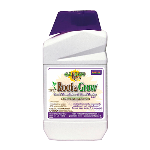 Bonide Root and Grow Root Stimulator and Plant Starter helps reduce transplant shock and promotes more vigorous plant growth.